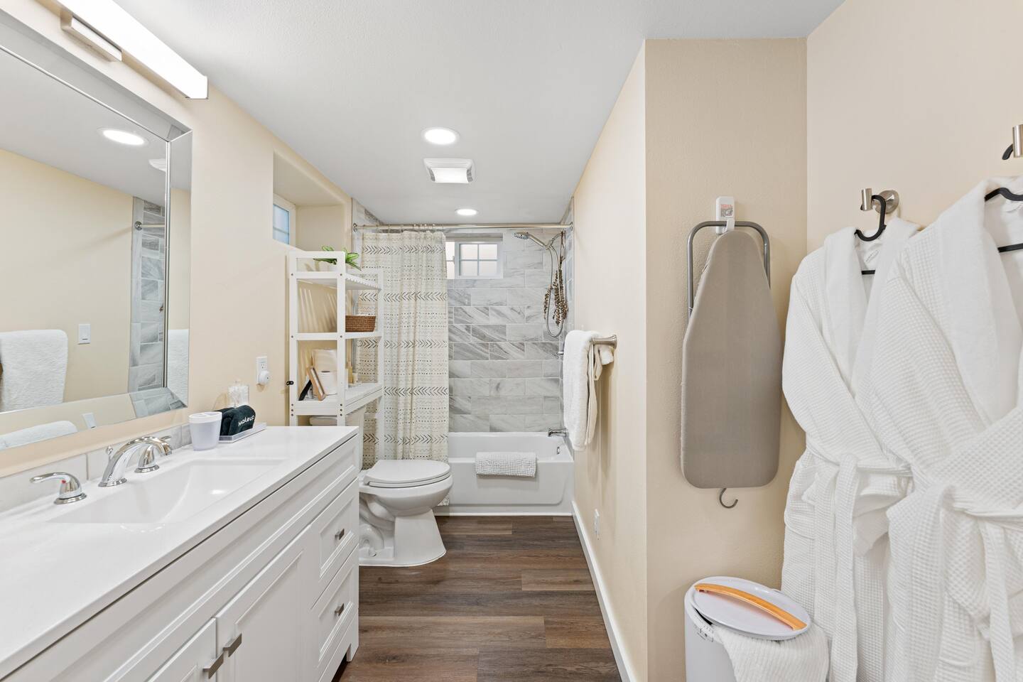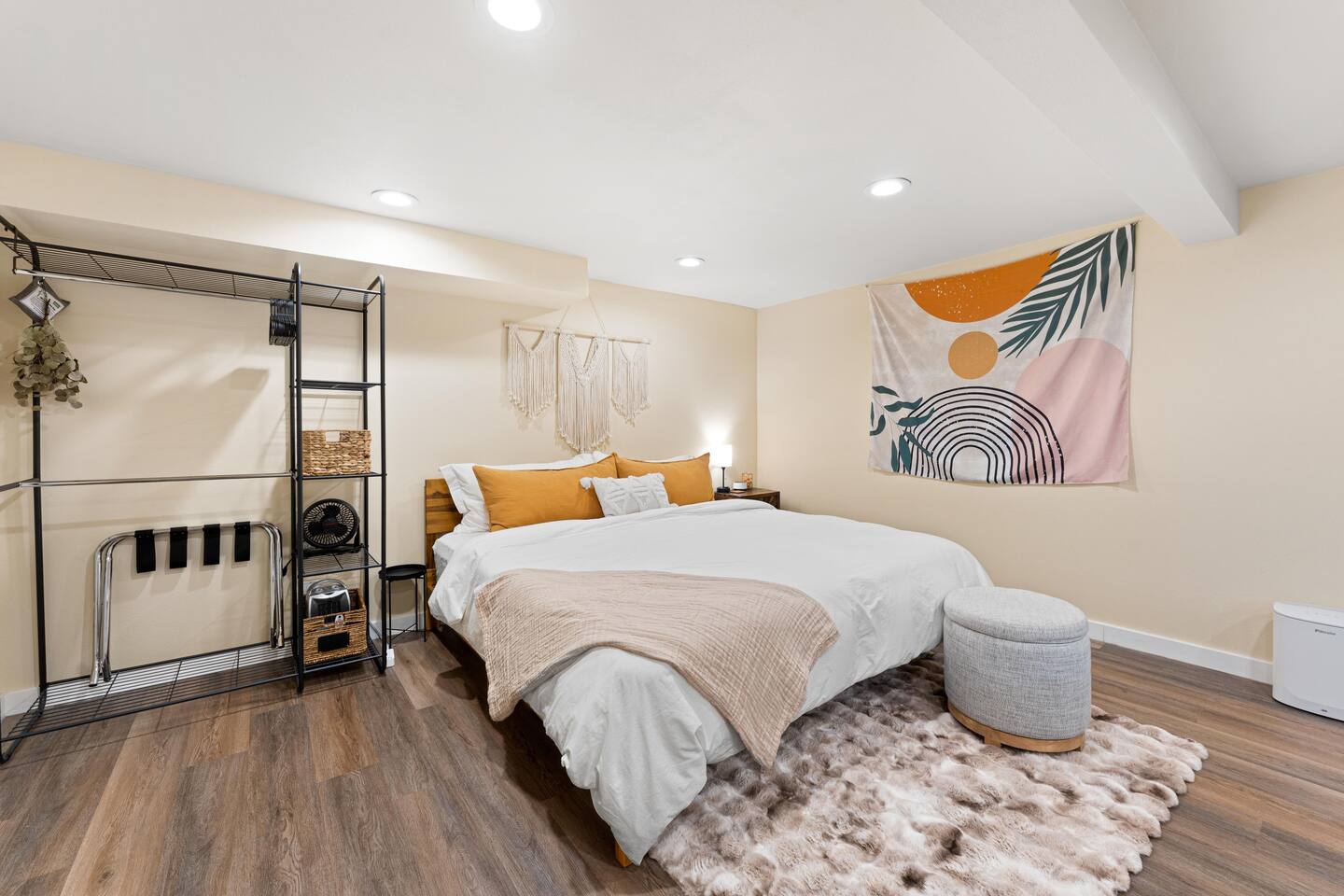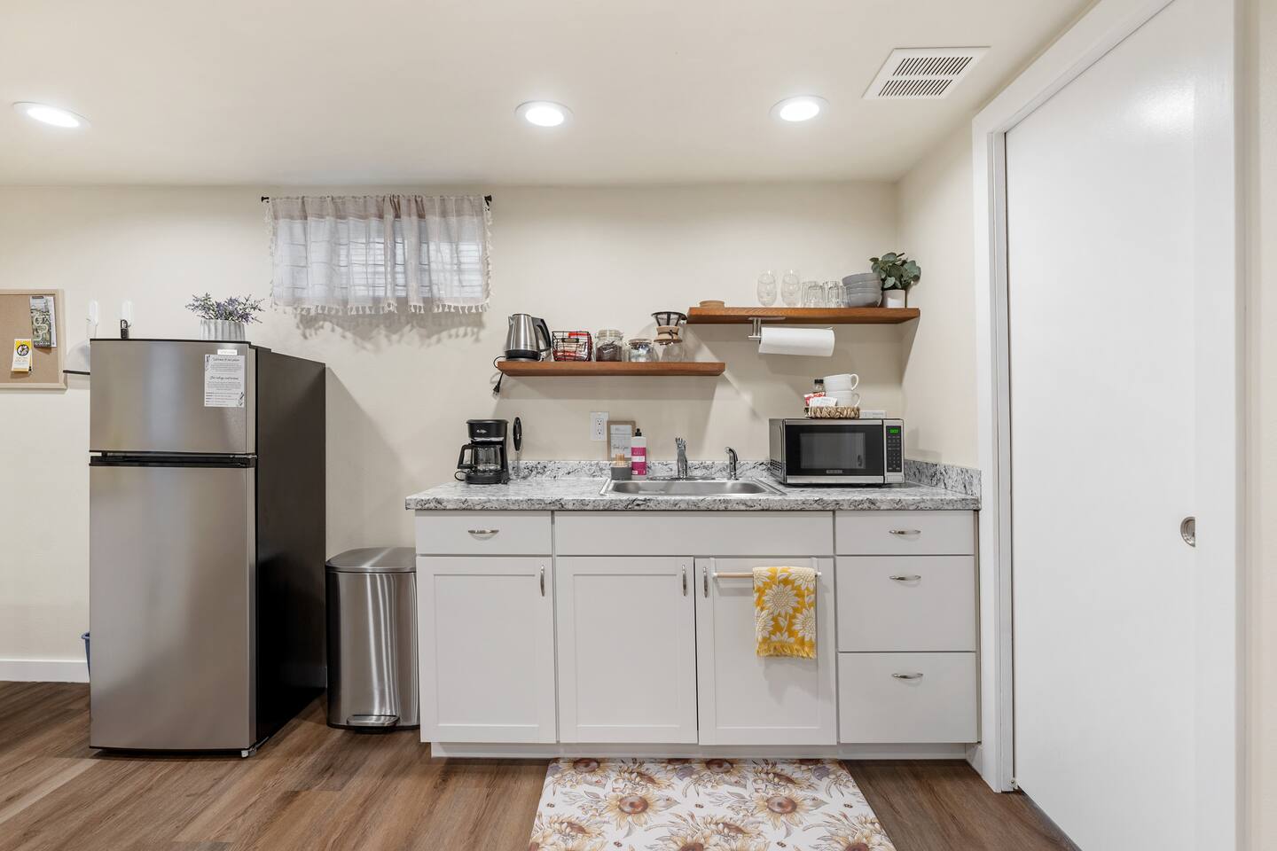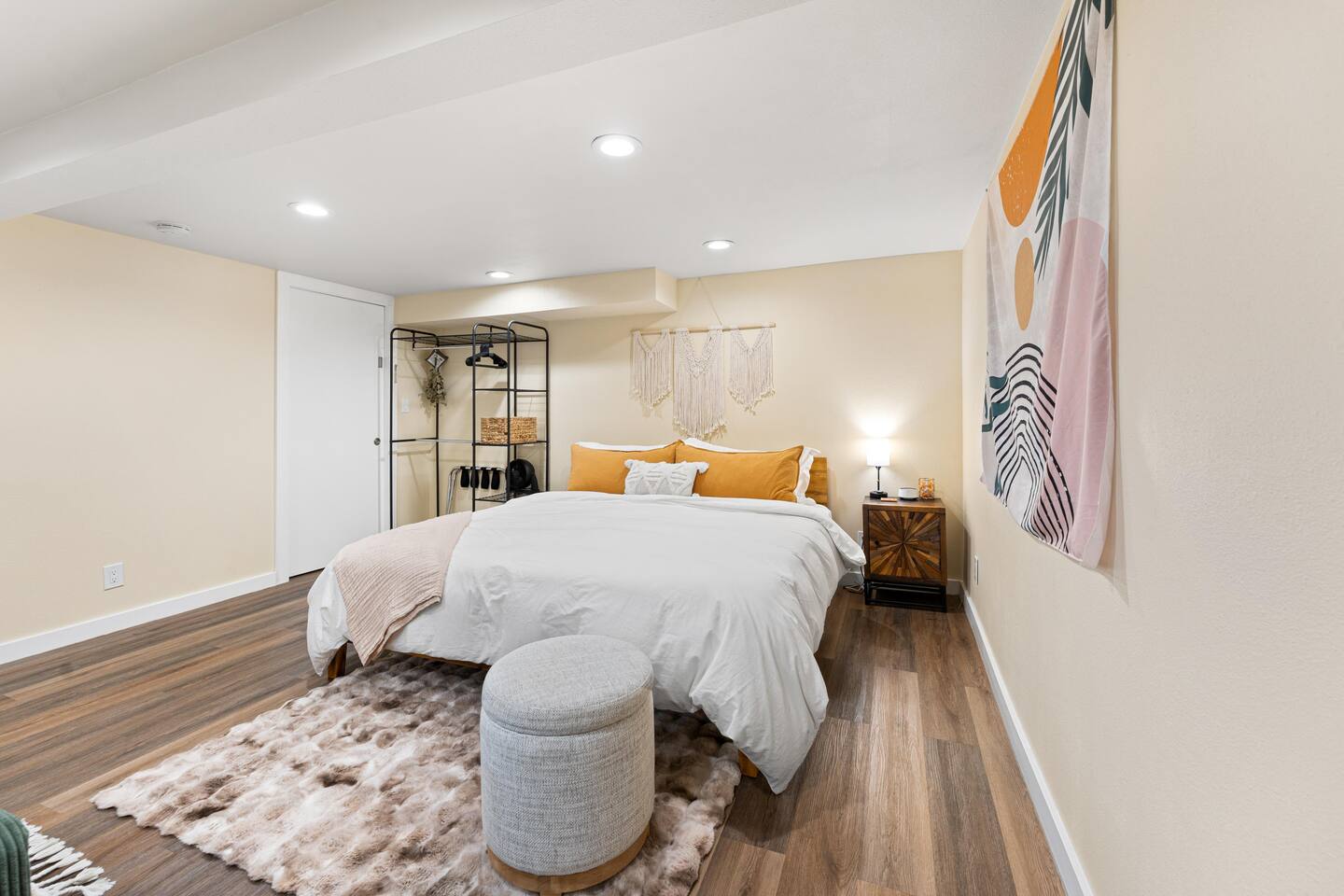 You’ll have the entire lower-level studio apartment to yourself, complete with a private entrance for easy self-check-in. Shared amenities include the laundry room (available for stays of 3+ nights and located on the same level), the fully fenced backyard, and the outdoor hot tub — available for $20 per night during fall and winter, charged only on nights you choose to use it.