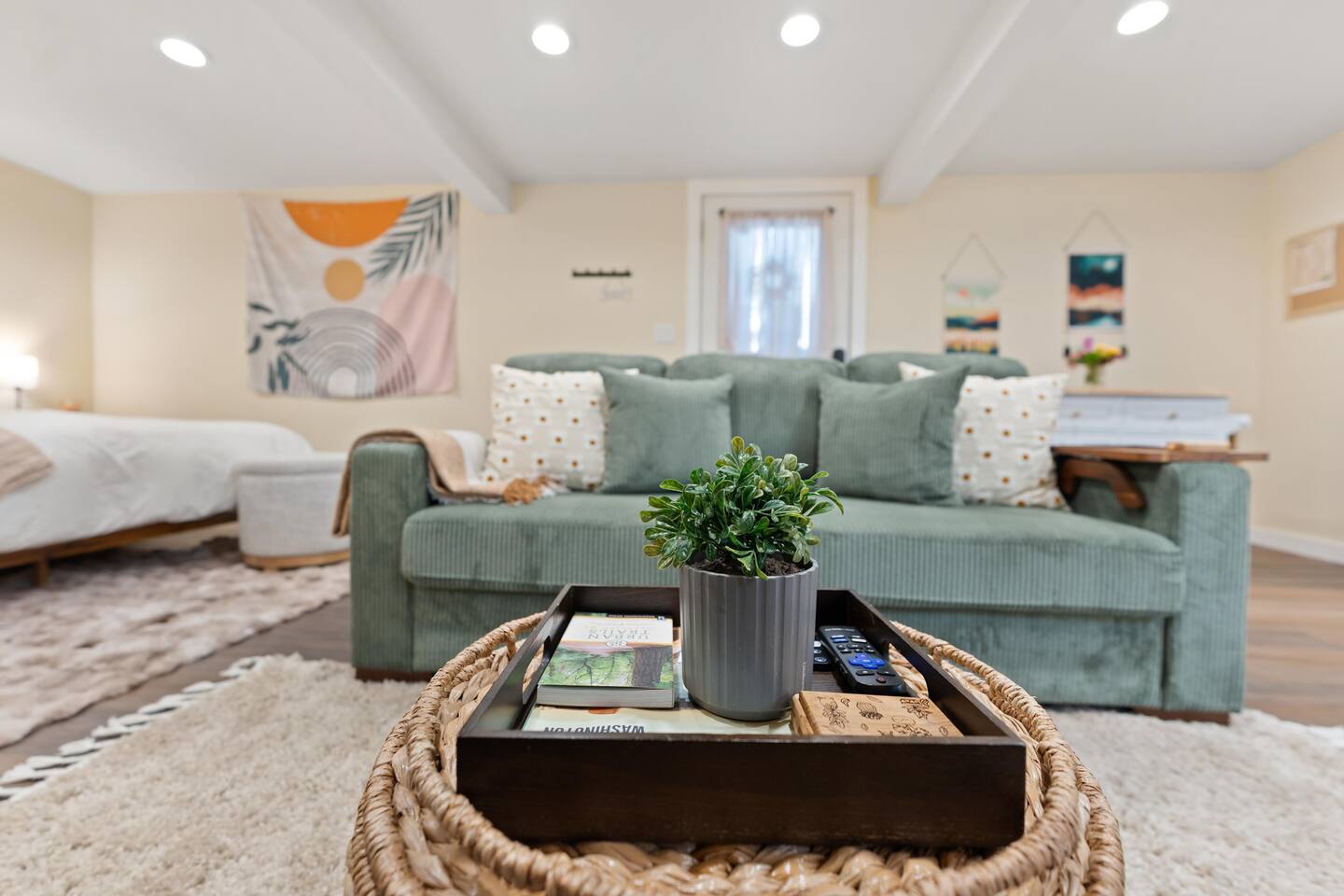 • Located on the lower level of our 1940s home- everyday noise from upstairs can be heard, including footsteps and the occasional singing in the shower 🤪 • Entry requires about 10 steps. • Central AC/heat is controlled from the main level- just let us know if you need an adjustment. • A starter supply of toiletries is provided; guests restock as needed. Pet policy Well-behaved, potty-trained pets are welcome (2 max). $55 per approved pet (covers up to 2 weeks). Additional $20/week for extended stays. Due to the layout and size of our studio, only small to medium-sized dogs (under 40 lbs) are permitted. Cats are allowed on a case-by-case basis, please send a message to inquire. Pet bed, bowls, and blankets included! - Décor and amenities may change slightly over time to keep things fresh.